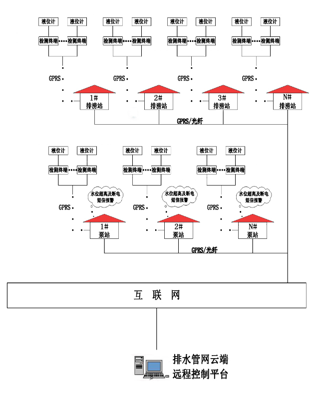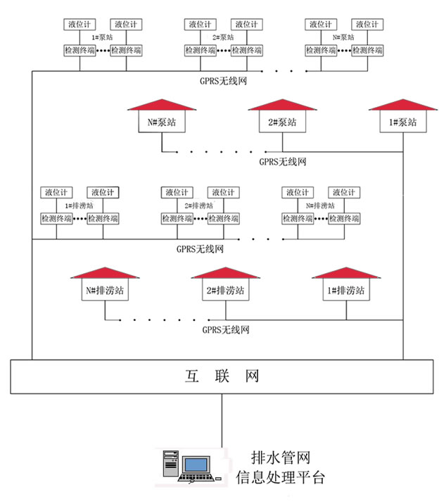 水位远程监控系统主要由监控中心、通信网络、终端设备、测量设备等四部分组成。